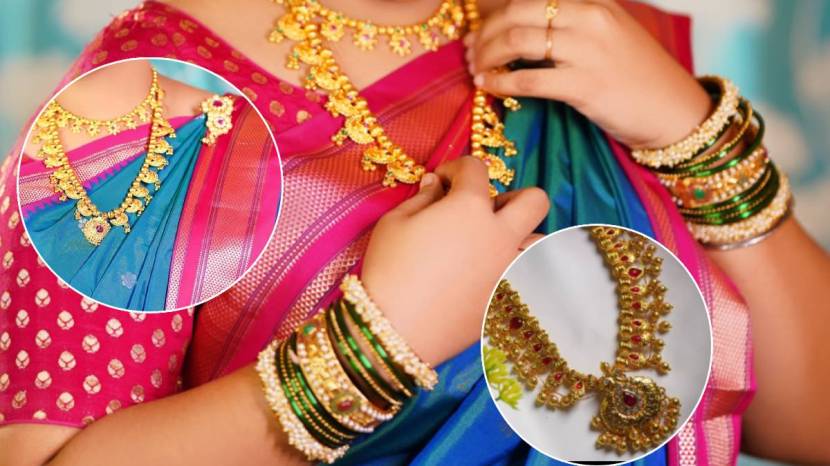 Kolhapuri saaj सण-उत्सवांना सुरुवात झाली की महिलांची पावलं मॅचिंग दागिन्यांच्या खरेदीसाठी दुकानांकडे वळू लागतात. दागिन्यांच्या डिझाईनचा ट्रेण्ड सध्या बदलत आहे. पारंपरिक दागिन्यांची मागणी आता पुन्हा एकदा वाढली आहे. तरुण पिढीलाही हल्ली जुन्या पारंपारिक दागिन्यांच्या डिझाईनची भुरळ पडत आहे. दरम्यान यावर्षीच्या सण-उत्सवांच्या पार्श्वभूमीवर बाजारात सध्या कोल्हापुरी साज हा दागीना ट्रेंड होत आहे. महाराष्ट्रीयन स्त्रियांमध्ये कोल्हापूरी साज हा एक खास नेकलेसचा प्रकार अतिशय लोकप्रिय आहे. हा साज संपूर्ण महाराष्ट्रामध्ये बनवला जातो पण यामध्ये कोल्हापूरी साज प्रसिद्ध आहे. कोल्हापुरी साज हा मराठी स्त्रियांमध्ये फार प्रचलित असलेला दागिना आहे.अतिशय सुंदर आणि शोभिवंत दिसणाऱ्या या दागिन्यांची पाहणाऱ्या प्रत्येकाला भुरळ पडत आहे.