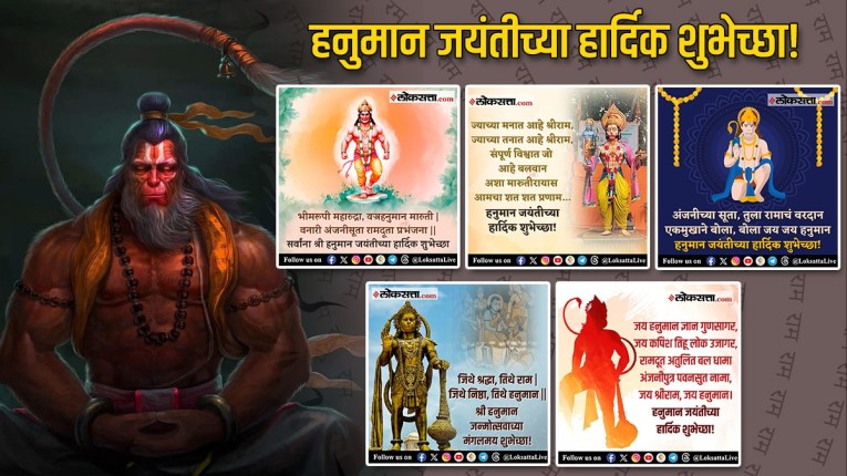 Hanuman Jayanti Wishes 2025 in Marathi: श्रीरामाचा सर्वश्रेष्ठ भक्त म्हणजे हनुमान. चैत्र महिन्यातील पौर्णिमा तिथीच्या दिवशी सूर्योदयाच्या वेळी हनुमानाचा जन्म झाला होता. यंदा १२ एप्रिल रोजी म्हणजेच शनिवारी हनुमान जयंती साजरी केली जाणार आहे. अनेक भक्तगण या दिवशी आनंदात, मोठ्या श्रद्धेत हा दिवस साजरा करतात. यंदा या जन्मोत्सवाला तुम्ही नातेवाईक, प्रियजन आणि मित्र परिवाला भक्तीमय शुभेच्छा पाठवून त्यांचा आनंद अधिक द्विगुणीत करू शकता.