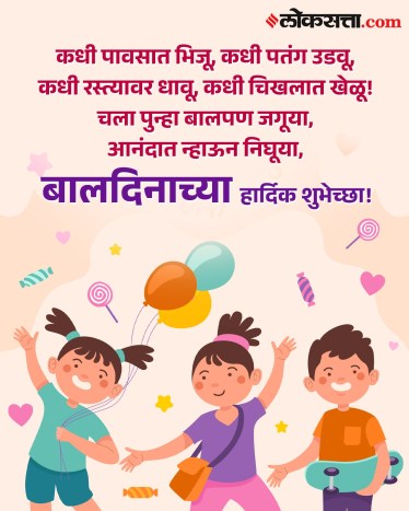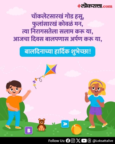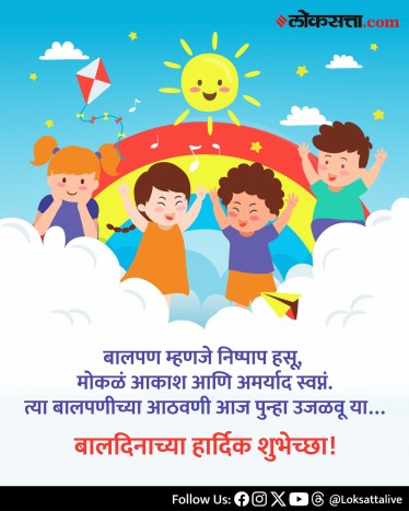 बालदिनाचं खरं वैशिष्ट्य म्हणजे त्या छोट्या मनांतील मोठ्या स्वप्नांचा सन्मान! ही ती पिढी आहे, जी उद्याचा भारत घडवणार आहे आणि म्हणूनच आजचा दिवस आपल्याला आठवण करून देतो की प्रत्येक मुलाला प्रेम, शिक्षण आणि बालपणाचं स्वातंत्र्य मिळायला हवं. या विशेष दिवशी तुम्हीही तुमच्या स्टेटसमध्ये सुंदर बालदिनाच्या शुभेच्छा संदेश ठेवा, त्या निष्पाप हास्याला अभिवादन करा आणि आनंद वाटा; कारण प्रत्येक मोठ्या माणसाच्या मनात आजही एक लहानसं मूल जिवंत आहे, जे हसण्याची, खेळण्याची आणि स्वप्नं पाहण्याची वाट बघतंय. चला, त्या बालपणाला पुन्हा जगू या… आणि सर्वांना देऊ या मनापासून बालदिनाच्या हार्दिक शुभेच्छा! या निमित्ताने तुम्ही तुमच्या प्रियजनांसोबत हे शुभेच्छा संदेश शेअर करू शकता.