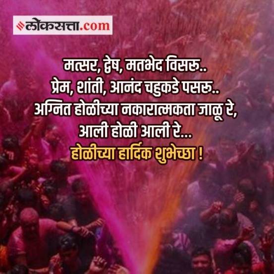 Holi 2022: आजचा दिवस पुरणाची पोळी करत, गोडधोड करत एकमेकांना शुभेच्छा देत आनंद साजरा करण्याचा आहे. आजचा दिवस आहे तो बाकीचं सगळं विसरत मनमोकळेपणाने होळीच्या शुभेच्छा देण्याचा. यादिवशी आपलं दु:ख विसरत एकत्र येत सगळेजण हा सण साजरा करतात. पण प्रत्येकवेळी आपल्याला आपल्या प्रियव्यक्तींना भेटणं शक्य होत नाही. मग त्यावेळेस आपण मेसेजच्या माध्यमातून आपल्या भावना समोरच्यांपर्यंत पोहोचवतो. तर आजच्या या सणानिमित्त पाठवायच्या मेसेजेस् ची काही सजेशन्स..