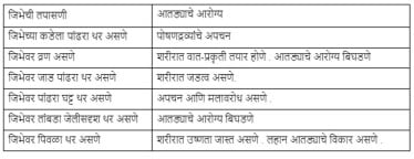 खालील तक्ता जिभेवरून तपासल्या जाणाऱ्या काही पचनाशी संबंधित विकारांवर प्रकाश टाकणारा आहे.