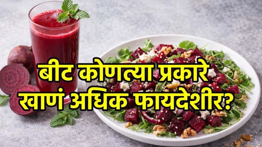 Beetroot Benefits: बीट हे आरोग्यासाठी अत्यंत फायदेशीर मानले जाते. थंडीच्या दिवसांमध्ये तर अनेक जण आवर्जून बीटाच्या रसाचे सेवन करतात. बीटमध्ये लोह, फोलेट, फायबर आणि अँटीऑक्सिडंट्स भरपूर प्रमाणात असतात, जे शरीराला आतून मजबूत करतात. त्याशिवाय बीट अशक्तपणा दूर करण्यास, पचन सुधारण्यास आणि वजन नियंत्रित करण्यासदेखील मदत करते. म्हणूनच अनेक आरोग्य तज्ज्ञ तुमच्या आहारात बीटाचा समावेश करण्याची शिफारस करतात. परंतु, बरेच लोक बीटाचा रस पिणे अधिक फायदेशीर आहे की ते कच्चे खाणे याबद्दल गोंधळलेले असतात. चला तर आज बीटाचे सेवन करण्याची योग्य पद्धत कोणती ते आपण जाणून घेऊ