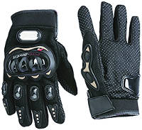 बाइक चालवताना ग्रिपसाठी ग्लोव्ह्ज तर हवेच. रोज जवळच्या ठिकाणी बाइक चालवायला ग्लोव्ह्जची शक्यतो गरज लागत नाही. परंतु लांबच्या प्रवासाला ग्लोव्ह्ज हवेतच. ग्लोव्ह्ज निवडताना तुम्ही कोणत्या ठिकाणी जाताय हे महत्त्वाचे आहे. थंड ठिकाणी की कडक उन्हाच्या ठिकाणी जाताय यानुसार म्हणजे तिथल्या हवामानानुसारच ग्लोव्ह्ज निवडले गेले पाहिजेत. लेदरचे ग्लोव्ह्ज, फिंगरलेस ग्लोव्ह्ज, मोटो-क्रॉस ग्लोव्ह्ज, गौंटलेट ग्लोव्ह्ज (Gauntlet), ऑफ-रोड मोटरसायकल ग्लोव्ह्ज, स्ट्रीट ग्लोव्ह्ज, समर क्रूझिंग (Cruising) ग्लोव्ह्ज, विंटर मोटरसायकल रायडिंग ग्लोव्ह्ज असे अनेक प्रकारचे ग्लोव्ह्ज बाजारात उपलब्ध आहेत. सगळ्या परिस्थितीचा विचार करून ग्लोव्ह्ज निवडा.