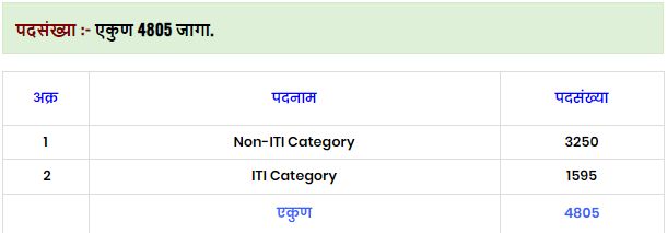 ITI Category :- १0 वी उत्तीर्ण, ITI उत्तीर्ण व NCVT किंवा SCVT मान्यता दिलेल्या कोणत्याही संस्थेचे संबंधित व्यापार प्रमाणपत्र.