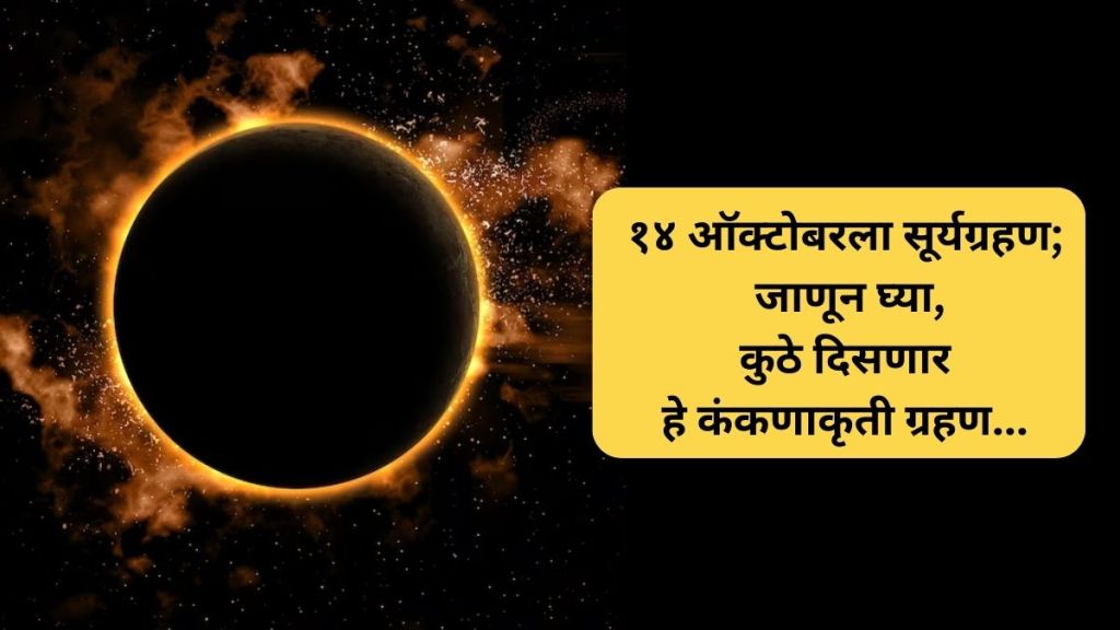 १४ ऑक्टोबरचे हे ग्रहण या वर्षातील दुसरे सूर्यग्रहण असेल. या ग्रहणाला कंकणाकृती सूर्यग्रहण म्हणतात. या सूर्यग्रहणाची वेळ आणि हे सूर्यग्रहण कुठे दिसणार, याविषयी आज आपण सविस्तर जाणून घेऊ.