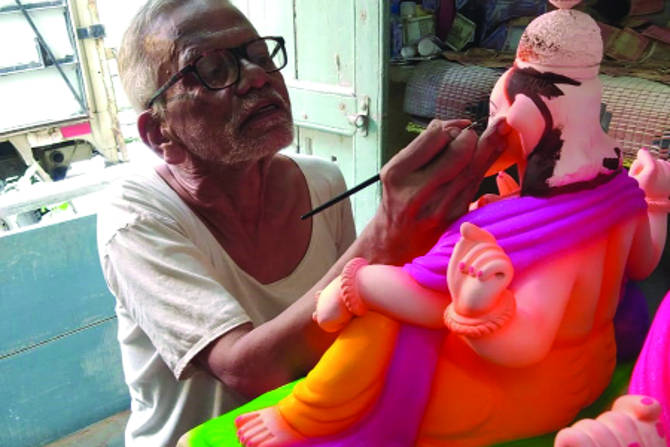 मुंबईमध्ये गिरगावात व्ही. पी. बेडेकरांच्या मुख्य दुकानाकडे पाठ करून ठाकूरद्वारच्या दिशेला जाणारा मुगभाटमधला रस्ता जिथे संपतो, त्याच्यासमोर ‘धोबी वाडी’ ही वसाहत आहे. डाव्या-उजव्या दोन्ही बाजूंना पाच-सहा दुकाने आहेत. आत शिरताच समोर मोरे यांची सुप्रसिद्ध गणेश चित्रशाळा आहे. आपल्या खास प्रथेनुसार गणेशमूर्ती तयार करण्यासाठी दक्षिण मुंबईत मोरेंची चित्रशाळा सुप्रसिद्ध आहे. वेगवेगळ्या आकारांच्या गणपतीच्या मूर्ती रंगवताना बघणं आणि तासन्तास भान हरपून बसून राहणं हा एक सुखसोहळा आहे. जूनमध्ये शाळा सुरू झाली, की शाळेतून घरी येताना वाटेत लागणाऱ्या चित्रशाळेत गणपतीची मूर्ती तयार होताना तासन्तास भान हरपून थांबणं सुरू होतं. चित्रशाळा कुठली, हा खूप मोठा प्रश्न नसतो, कारण गिरगावात चित्रशाळांची जुनी परंपरा आहे. हरमळकरांकडची बांधणी, कोरगावकर यांचे गाय- वासरासोबतचे गणपती, खानविलकरांकडचे तलम कुर्ता आणि फेटा बांधलेले गणपती, मादुस्करांकडचे वेगवेगळ्या दागिन्यांनी सजलेले गणपती असं वेगवेगळ्या ठिकाणी वैविध्य पाहायला मिळत असे. गिरगावात काही मोठे गणपती लवकर मांडव घालून मांडवातच रचले जात. कधी छोटे गणपती – कधी मोठे गणपती असा कार्यक्रम जवळजवळ रोजच चालतो. दिवसागणिक गणपतीच्या मूर्तीत होत जाणारा बदल अनुभवणं, आपल्याला ते कळतंय याचा आनंद होणे या दोन्ही मजेशीर गोष्टी असतात. गिरगावातील अनेक लहान मुलं याच सुखात लहानाची मोठी झाली आहेत. खूप आधीपासूनच मूर्तिकार आपल्या तयारीला लागलेले असत. समुद्रातून शाडू माती घेऊन त्याच्यावरती वेगवेगळे संस्कार करणे, वर्षभर त्याचा सांभाळ करून मग जसजशी लागेल तसतशी माती काढून आकारानुसार गणपती रचायला घेणे, मूर्ती तयार झाली की आधी त्याला मशीन स्प्रेच्या साहाय्याने एक मूळ रंग देणे, त्याच्यानंतर त्याच्या अंगावरचे कपडे, त्याची बैठक, त्याचे दागिने, चेहरा, कान वगैरे सर्व गोष्टी एक एक करत या क्रमाने मूर्तिकार आपल्या कामाच्या पूर्णत्वाच्या दिशेने प्रवास करतात. एकदा का गणपती साकारायला सुरुवात झाली, की मग त्यांना ‘चैन पडेना’ असं होतं. एकीकडे गणपती तयार करणे ही एक जोखीम असते; पण त्याचबरोबर ज्याला जशी हवी तशी मूर्ती देणे आणि ती घेऊन जाताना घेणाऱ्याच्या चेहऱ्यावरचा आनंद पाहणं, ही कुठल्याही मूर्तिकारासाठी मोठी गोष्ट असावी. काही घरगुती गणपती किंवा मंडळांचे गणपती हे वर्षांनुवर्षे सारखेच असतात. त्यांची मागणी ही दरवर्षी ठरलेली असते. डाव्या हाताखाली लोड, गळ्यात फुलांचा हार, मांडीवरती ठेवलेले देता-घेता हात वगैरे; परंतु दरवर्षी मूर्तिकार स्वत:च्या पसंतीने काही गणेशमूर्ती तयार करतात. समाजात घडणाऱ्या गोष्टींचे प्रतिबिंब त्या गणेशमूर्तीमध्ये उमटलेलं 
