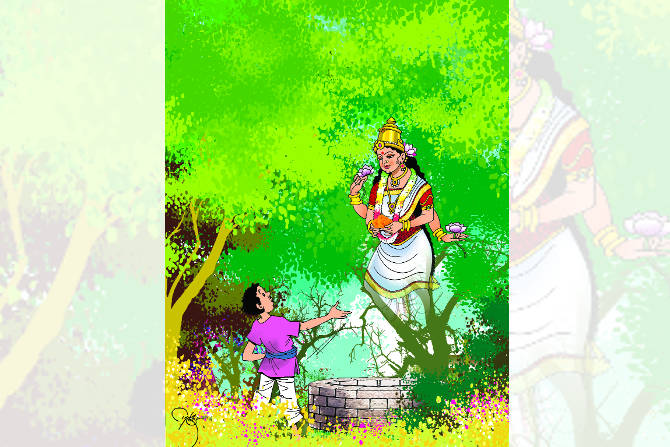 ‘तुझ्या आजोबांना मी विहिरीतली कुऱ्हाड काढून दिली होती, पण आता मी ती चूक करणार नाही. मी कुऱ्हाड काढणार नाही,’ वनदेवतेने सांगितले.