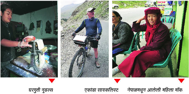 याच वाटेवर एक अवलिया भेटला. डोंगरभटक्यांना किंवा सायकलिस्टना असं कोणी भेटलं की त्यांच्यासाठी पुढची वाटचाल आणखीनच सुकर होऊन जाते. तो आमच्या उलट दिशेने सायकलवरून येत होता. सायकल हाच समान धागा असल्यामुळे आपोआप थांबलो. विचारपूस झाली. तर हा पन्नाशीतला पठ्ठय़ा एकटाच मनालीहून लेहला गेला होता, तिकडून कारगिलला आणि मग झंस्कार व्हॅलीत शिरला. झंस्कारमध्ये तर लेह-मनालीसारखे रस्तेदेखील नाहीत. अगदी कच्चा रस्ता आणि गावंदेखील नाहीत, ना ढाबे. त्यामुळे हा पठ्ठय़ा सायकलीवर सारं सामान लादून वर तंबूदेखील घेऊन भटकत होता. दुर्दैवाने त्याचा तंबू झंस्कार सोडतानाच कुठेतरी पडला. पण हा नेटाने एकटाच सायकिलग करत होता आणि आता परत मनालीला निघाला होता. सोबत नकाशा हेच काय ते माध्यम. इंग्लंडचा रहिवासी असल्याने तशी भाषेचीदेखील अडचण. पण या वयात त्याची जिद्द पाहून खूपच आनंद वाटला. बोलण्याच्या नादात त्याचं नाव मात्र विचारायचं विसरून गेलो, इतकं आमचं बोलणं अनौपचारिक होतं.