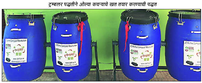 हे साधे आणि सोपे उपाय प्रत्येकाने घरी सुरू केले तरी आपल्याकडच्या कचरा समस्येवर बरीच मात करता येईल. मात्र त्यासाठी मानसिकतेत बदल व्हायला हवा हे महत्त्वाचे. माझा कचरा ही माझी जबाबदारी अशी मनोभूमिका तयार व्हायला हवी. जानेवारी २०१८ पासून मुंबई महापालिकेने ज्या गृहसंकुलाचा कचरा हा १०० किलोपेक्षा अधिक आहे त्यासाठी एक सूचना जारी केली आहे. त्यानुसार हा कचरा महापालिका उचलणार नसून त्यावर त्या त्या गृहसंकुलाने स्वत:च प्रक्रिया करणे बंधनकारक करण्यात आले आहे. पण काही जागरूक नागरिक आपणहून घरातल्या घरातच कचऱ्यावर प्रक्रिया करण्याची यंत्रणा अवलंबतात. दादरच्या ‘स्वप्नभूमी’ सोसायटीच्या मीना आकेरकर या त्यापैकीच एक. त्या सांगतात की, आपल्याला जर लोकांना सांगायचे असेल तर ते आपण आधी स्वत: करणे गरजेचे असते. म्हणूनच त्यांनी स्वत: घरी प्रक्रिया सुरू केली. नंतर मग सोसायटीतील महिलांशी बोलून त्यांना याचे महत्त्व पटवून दिले. व्हॉट्स अॅप ग्रुप तयार करून या प्रक्रियेतील समस्यांची चर्चा होऊ लागली. मीना आकेरकर यांच्या मते ही चर्चा होणे गरजेचे आहे. कारण बऱ्याच वेळा या कामातील अडचणींचा विचार केला जात नाही आणि मग तो प्रयोग अर्धवट सोडून देण्याचा प्रकार होतो. वास का येतो, तो टाळायचा असेल तर काय केले पाहिजे, कल्चरचे प्रमाण चुकले तर काय होते या साऱ्याची आम्ही चर्चा करायचो. कचऱ्याच्या डब्यातील प्लास्टिकच्या पिशवीचा वापरदेखील बंद केला. कचऱ्यावर गृहसंकुलातच प्रक्रिया करणाऱ्या अनेक ठिकाणांना भेटी दिल्या. त्यातूनच आम्ही हे शिकत गेलो. कचऱ्याच्या वर्गीकरणाबद्दल मीना आकेरकर अगदी सोप्या भाषेत सांगतात की घरी आपण सर्व गोष्टी वेगवेगळ्या करून ठेवतो, अगदी फोडणीच्या डब्याचे उदाहरण घ्यायचे तर त्यातदेखील सर्व बाबी व्यवस्थित वेगळ्या केलेल्या असतात. तर मग आपण कचऱ्याचे वर्गीकरण का करू शकत नाही हा विचार करायला हवा. मुख्य म्हणजे, कचरा म्हणजे घाण ही मानसिकता दूर व्हायला हवी. गेल्या सहा महिन्यांपासून मीना आकेरकर यांच्या सोसायटीने आपणहूनच सोसायटीच्या ओल्या कचऱ्यावर प्रक्रिया करायची यंत्रणा वापरायला सुरुवात केली आहे. या सोसायटीत २४ च घरं असल्यामुळे कचऱ्याचे प्रमाण तसे कमी आहे. त्यामुळे विजेवर चालणाऱ्या यंत्रापेक्षा ट्रंबलरची पद्धत वापरली आहे. यामध्ये विजेचा वापर होत नाही, पण त्यात कचरा टाकताना तो बारीक करून टाकावा लागतो आणि दिवसातून दोन-तीन वेळा ते ट्रंबलर हलवावे लागतात.