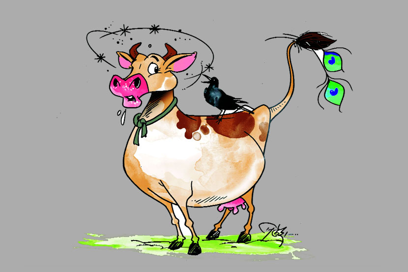 आपल्याकडे देवाच्या अवतारांत मासा, कासव, डुक्कर हे प्राणी झाले. पण त्यामुळे त्यांना संरक्षण मिळण्याऐवजी त्या अवतारांना उदरात जागा देण्याकडे माणसाचा कल झाला. हे वेळीच लक्षात आल्याने काही प्राणिप्रेमी ऋषींनी प्राण्यांना अवतार करणे थांबवले व पुढे नरसिंह, वामन, परशुराम, राम इत्यादी काही कठोर माणसे अवतार केली गेली. त्यामुळे गाईला अवतारात स्थान मिळाले नाही. ती उणीव थेट कृष्णावतारात भरून निघाली. त्यातही पूर्ण अवतार नाही, पण सर्वोत्कृष्ट साहाय्यक अभिनेत्रीचा त्या वर्षीचा राष्ट्रीय पुरस्कार तिला मिळाला. महाभारत या खूप टीआरपी असलेल्या पुस्तकात मानाचे स्थान मिळाले. तोपर्यंत मानाचे स्थान असलेले black and white काळातील स्टार असलेले मासा, कासव, डुक्कर हे पुढे ज्युनियर आर्टिस्ट झाले व ईस्टमन कलरयुगात गाय सुपरस्टार झाली.