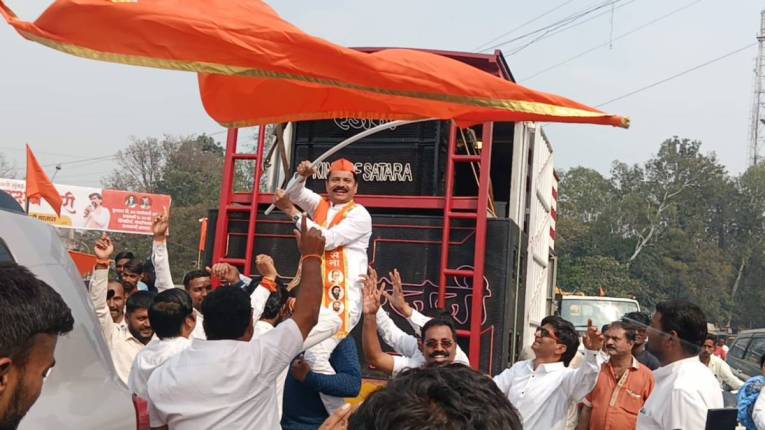 दुपारी शिवसेनेच्या शिंदे गटाच्यावतीने फटाके फोडून सातारी कंदी पेढे वाटून ध्वनीक्षेपकाच्या तालावर नाचून जल्लोष केला. यावेळी शिंदे गटाचे जिल्हा प्रमुख पुरुषोत्तम जाधव म्हणाले, मुख्यमंत्री एकनाथ शिंदे यांनी छत्रपती शिवाजी महाराजांच्या मूर्तीला साक्ष ठेवून आरक्षण देण्याची शपथ घेतली होती. मराठ्यांना आरक्षण देणार सांगून ती त्यांनी पूर्ण केली. जो शब्द दिला होता तो मुख्यमंत्र्यांनी पूर्ण केला असे त्यांनी सांगितले.