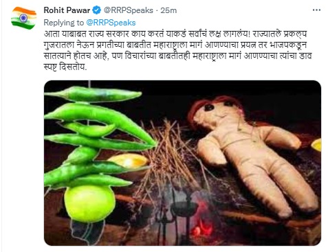 तसेच अन्य एका ट्वीटमध्ये, “आता याबाबत राज्य सरकार काय करतं याकडं सर्वांचं लक्ष लागलंय! राज्यातले प्रकल्प गुजरातला नेऊन प्रगतीच्या बाबतीत महाराष्ट्राला मागं आणण्याचा प्रयत्न तर भाजपकडून सातत्याने होतच आहे, पण विचारांच्या बाबतीतही महाराष्ट्राला मागं आणण्याचा त्यांचा डाव स्पष्ट दिसतोय,” असा आरोप रोहित पवार यांनी केला आहे.