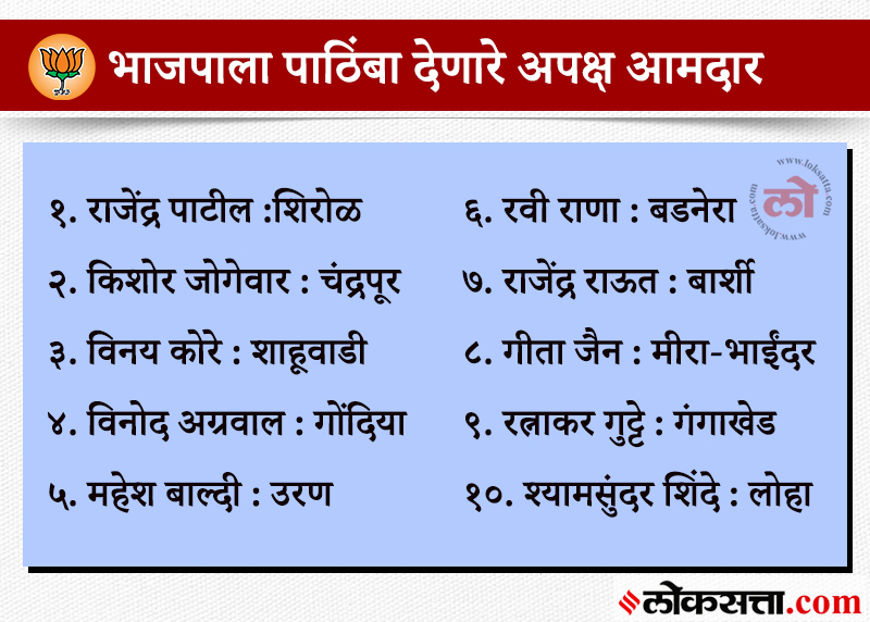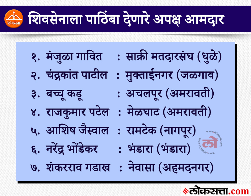 शिवसेनेला पाठिंबा देणारे अपक्ष आमदार