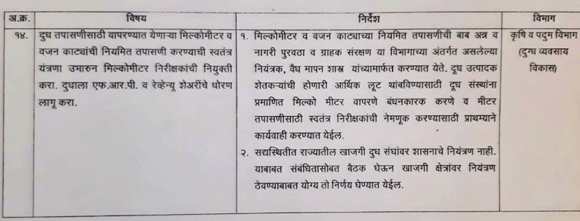 किसान सभेने पुढे म्हटलं, “राज्याचे मुख्यमंत्री, उपमुख्यमंत्री व दुग्धविकास मंत्री यांच्या उपस्थितीत संपन्न झालेल्या बैठकीत याबाबतचा निर्णय घेण्यात आला आहे. यानुसार मिल्कोमीटर व वजनकाटे, राज्य सरकारच्या अन्न व नागरी पुरवठा व ग्राहक संरक्षण या विभागाच्या अंतर्गत असलेल्या नियंत्रण, वैधमापन शास्र या यंत्रणेमार्फत नियमित तपासण्यात येतील असा निर्णय राज्य सरकारने घेतला आहे.”