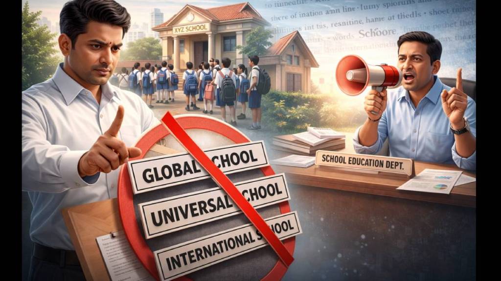 राज्याच्या शालेय शिक्षण विभागाने राज्य मंडळ, केंद्रीय शिक्षण मंडळाच्या शाळा (सीबीएसई) किंवा आंतरदेशीय मंडळांशी संलग्न असलेल्या शैक्षणिक संस्थांना त्यांच्या शाळेच्या नावात इंटरनॅशनल, ग्लोबल, युनिव्हर्सल, वर्ल्ड, युरो यासारखे शब्द वापरण्यास मनाई केली आहे.