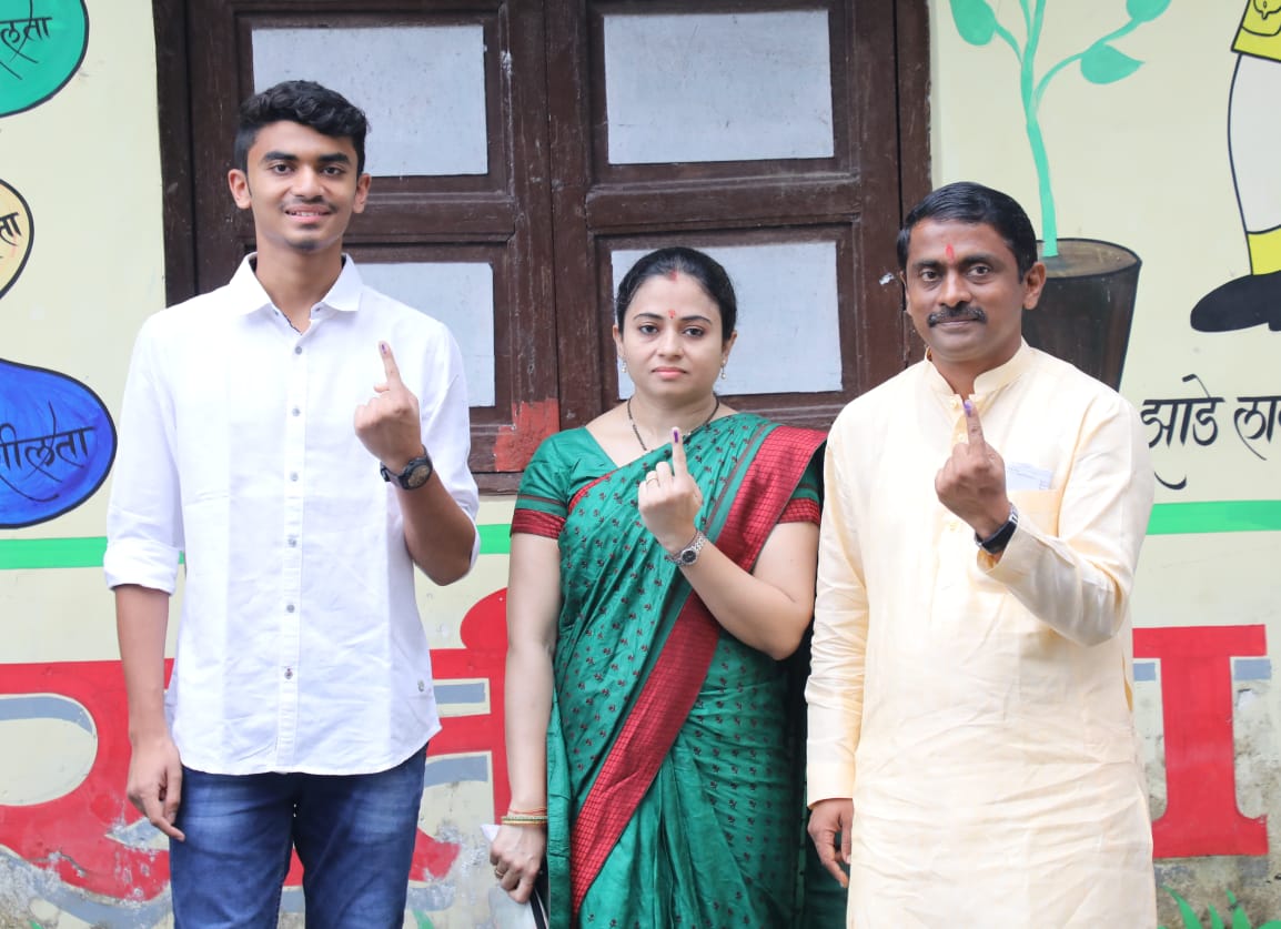 भाजपाचे पनवेलचे उमेदवार आणि विद्यमान आमदार प्रशांत ठाकूर यांनी सहकुटुंब मतदानाचा हक्क बजावला.