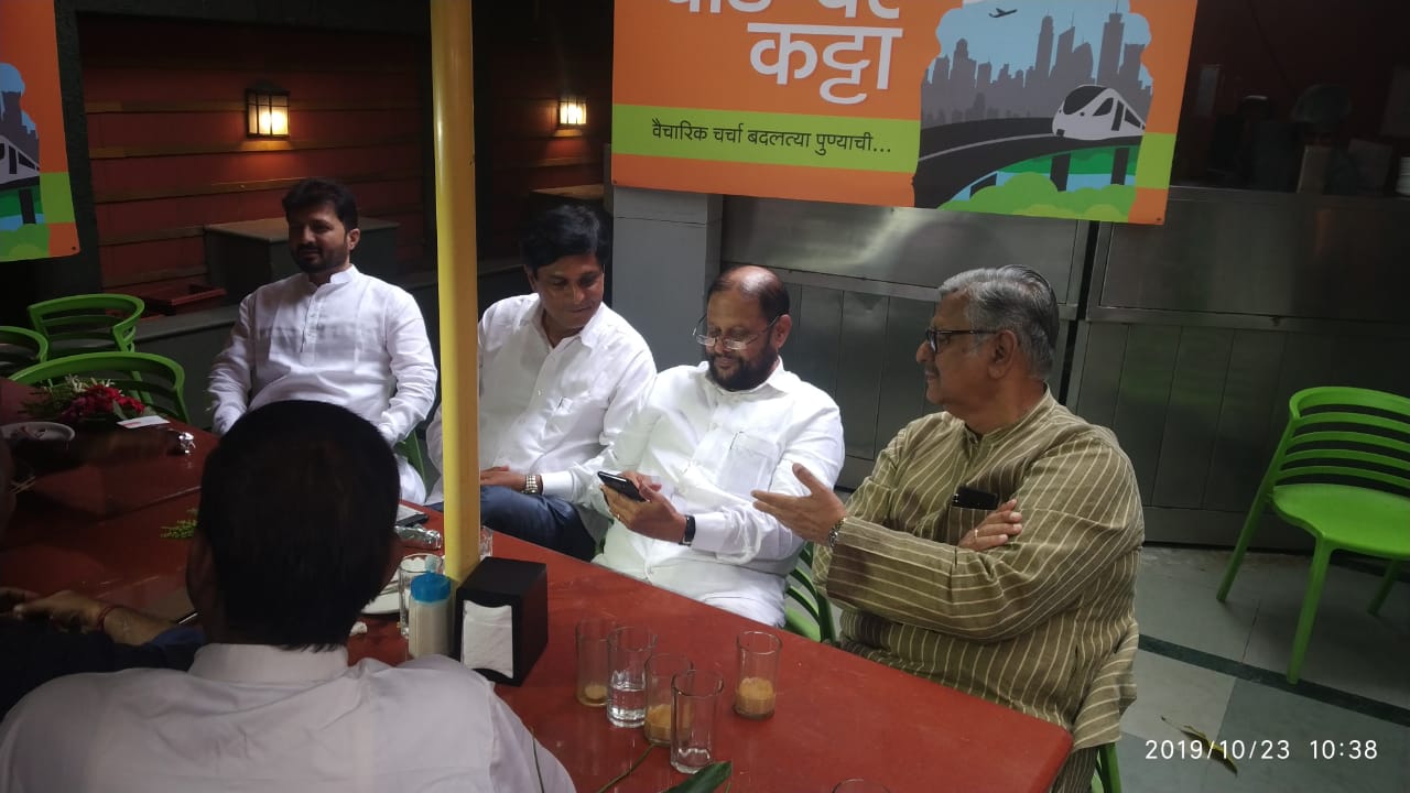 पुण्यात मागील सात वर्षांपासून लोकसभा, विधानसभा आणि महापालिका निवडणुकीच्या मतमोजणीच्या एक दिवस अगोदर वाडेश्वर कट्टयाचे आयोजन केले जाते. यामध्ये निवडणुकीतील अनुभव आणि निकालाविषयी चर्चा करण्यात येते. यावेळी चर्चेत राष्ट्रवादी काँग्रेस पक्षाचे शहराध्यक्ष, हडपसर विधानसभा मतदारसंघाचे उमेदवार चेतन तुपे, शिवसेना शहरप्रमुख संजय मोरे, वाडेश्वर कट्टयाचे आयोजक अंकुश काकडे, श्रीकांत शिरोळे, गोपाल चिंतल हे उपस्थित होते.