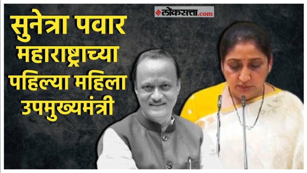 Sunetra Pawar takes oath as first woman deputy cm of maharashtra : राष्ट्रवादी काँग्रेसचे नेते आणि उपमुख्यमंत्री अजित पवार यांच्या अकाली निधनानंतर त्यांच्या पत्नी सुनेत्रा पवार यांनी आज (शनिवार) महाराष्ट्राच्या उपमुख्यमंत्री म्हणून शपथ घेतली. राजभवन येथे झालेल्या एका छोटेखानी कार्यक्रमात राज्यपालांनी त्यांना पद आणि गोपनीयतेची शपथ दिली. याबरोबरच सुनेत्रा पवार या महाराष्ट्राच्या राजकीय इतिहासातील पहिल्या महिला उपमुख्यमंत्री बनल्या आहेत.