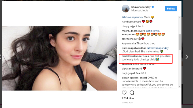 काही आठवड्यांपूर्वी चंकी पांडेची मुलगी अनन्या सोशल मीडियावर चर्चेचा विषय ठरली होती. चित्रपटसृष्टीत पदार्पण करण्यापूर्वीच तिचं असं चर्चेत येणं अनेकांना थक्क करणारं होतं. पण, असं अनपेक्षितपणे चर्चेत येण्यामागे कारणही तसंच होतं. चंकी पांडेच्या पत्नीने तिच्या इन्स्टाग्राम अकाऊंटवर अनन्याचा एक फोटो पोस्ट केला होता. त्याच फोटोवर कमेंट करत ‘प्लीज हिची डीएनए टेस्ट करा. चंकी पांडेची मुलगी आणि तीही इतकी सुंदर….’, अशी कमेंट फराह खानने केली होती. तिच्या या कमेंटनंतर अनेकांच्याच भुवया उंचावू लागल्या.