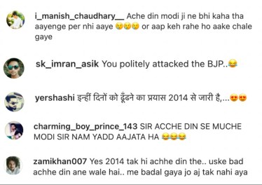 अमिताभ यांचा हा फोटो व्हायरल झाल्यानंतर नेटकऱ्यांनी त्यांच्या कॅप्शनचा संबंध मोदी यांच्याशी लावला आहे. एक नेटकरी म्हणाला, “अच्छे दिन येणार असं मोदी सुद्धा म्हणाले होते, पण नाही आले…आणि तुम्ही बोलत आहात की अच्छे दिन चले गए.” दुसरा नेटकरी म्हणाला, “तुम्ही नकळत बिजेपीवर निशाना साधला आहे.” तिसरा नेटकरी म्हणाला, “२०१४ पासून याचा दिवसांचा शोध सुरु आहे.” आणखी एक नेटकरी म्हणाला, “सर अच्छे दिन म्हटलं की मला मोदी आठवतात.”