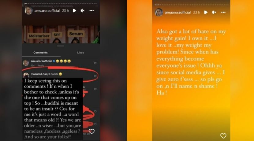 युजरनं केलेल्या कमेंटचा स्क्रिनशॉट इन्स्टाग्राम स्टोरीवर शेअर करताना अमृतानं लिहिलं, ‘अशा कमेंट मी नेहमीच पाहते पण याने मला फारसा फरक पडत नाही. मी याकडे लक्षही देत नाही. पण वाढलेलं वय खरंच लाजिरवाणी गोष्ट आहे का? कारण माझ्यासाठी हा फक्त एक शब्द आहे. वाढत्या वयासोबत आम्ही जास्त बुद्धिमान आहोत. पण तुम्ही कोण आहे. नाव नसलेले, चेहरा नसलेले आणि कमी वय असणारे?’