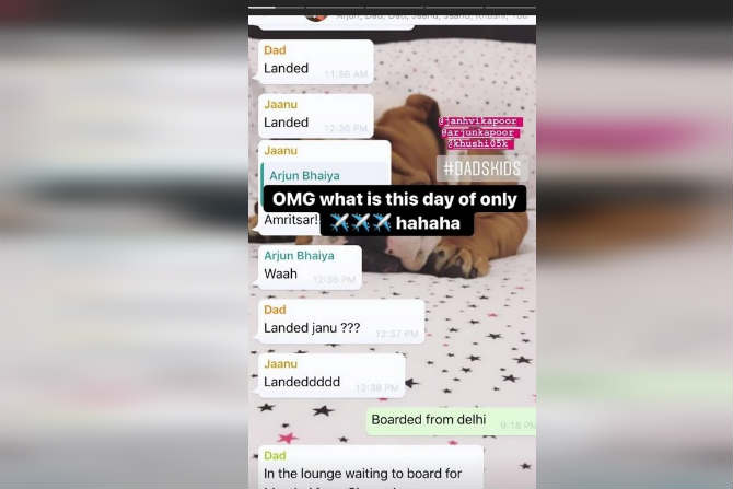 अंशुलाने काही दिवसापूर्वी तिच्या इन्स्टाग्राम स्टोरीमध्ये फॅमिली ग्रुपमधील एक फोटो शेअर केला होता. या फोटोवरुन ते फ्लाइटविषयी चर्चा करत असल्याचं दिसून आलं. तसंच ते एकमेकांना आपल्या फ्लाइटचं लॅण्डिंग कधी होणार हे सांगत असल्याचं पाहायला मिळालं. त्यांच्या या ग्रुपमध्ये बोनी कपूर, अर्जुन कपूर, जान्हवी कपूर असून त्यांच्यामध्ये ही चर्चा रंगली होती.