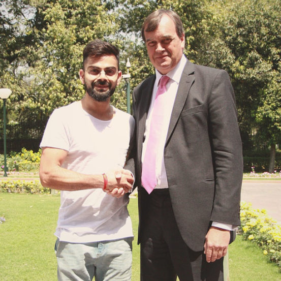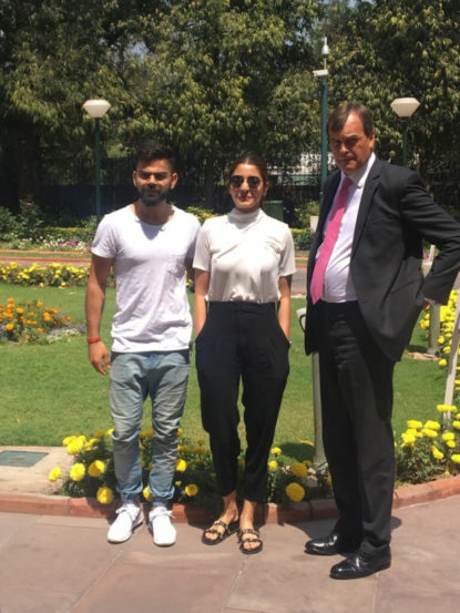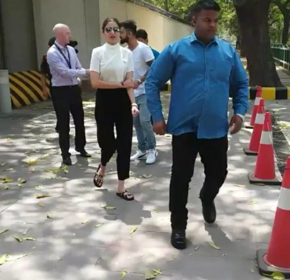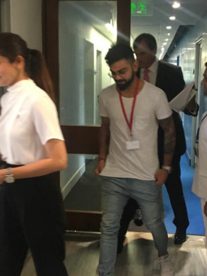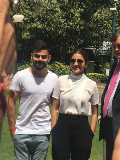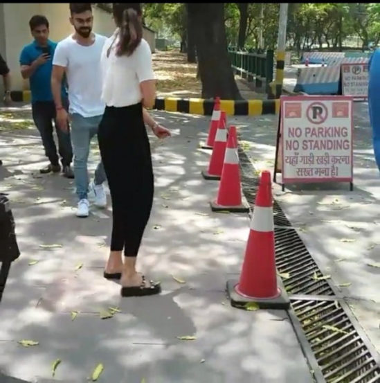 या फोटोंमध्ये विराटने पांढऱ्या रंगाचे टी- शर्ट घातले आहे तर अनुष्कानेही पांढरे टी-शर्ट आणि काळ्या रंगाची पँट घातली होती. विरुष्का दिल्ली येथील ब्रिटीश उच्चायोगमध्ये गेले होते.
