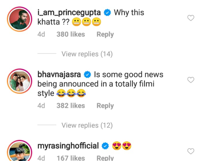 इतरही अनेक चाहत्यांनी असाच प्रश्न कमेंटमधून विचारला आहे. गोड बातमी आहे का?, तू गरोदर आहेस का?, नवा पाहुणा येणार आहे का अशा पद्धतीच्या अनेक कमेंट या पोस्टवर दिसून येत आहेत. त्यापैकी काही प्रतिनिधिक कमेंटचा स्क्रीनशॉर्ट खाली पाहा…