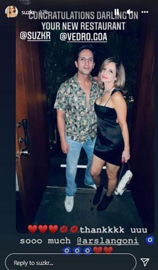 अर्सलन गोणीने इन्स्टाग्रामवर सुझानसोबत पार्टीतील एक फोटो इन्स्टाग्रामवर स्टोरीवर शेअर केला आहे. यावेळी अर्सलनने गर्लफ्रेंड सुझानला तिच्या नव्या हॉटेलबद्दल शुभेच्छा देत तिचे अभिनंदन केले आहे. तसेच तिच्या या नव्या सुरुवातीबद्दल तो फार आनंदी असल्याचे दिसत आहे. अर्सलनने शेअर केलेल्या या फोटोत ते दोघेही फार आनंदात असल्याचे पाहायला मिळत आहे.