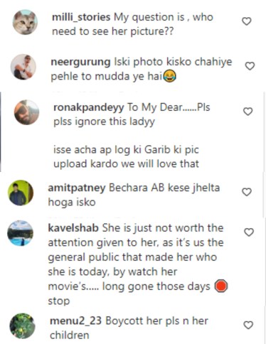 ही घटना घडल्यानंतर अनेक व्हिडीओ सोशल मीडियावर व्हायरल झाले आहेत. हा व्हिडीओ पाहिल्यानंतर अनेक नेटकऱ्यांनी त्यांना ट्रोलही केले आहे. “यांचा फोटो कोणाला बघायचा आहे”, असा प्रश्न एका नेटकऱ्याने व्हिडीओच्या खाली विचारला आहे. तर एकाने “बिचारे अमिताभ बच्चन यांना कसं सहन करत असतील”, अशी कमेंट केली आहे. “माझ्या प्रिय मित्रांनो कृपया या बाईकडे लक्ष देऊ नका. हिच्यापेक्षा तुम्ही कोणत्यातरी गरीबाचे फोटो शेअर करा, ते पाहायला आम्हाला आवडतील”, असा सल्ला एका नेटकऱ्याने दिला आहे.