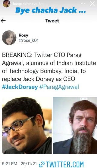 नेहमी आपल्या वादग्रस्त वक्तव्यांमुळे चर्चेत असणारी अभिनेत्री कंगना रणौतनेही यावर प्रतिक्रिया दिली आहे. कंगनाने इंस्टाग्रामला स्टोरीच्या माध्यमातून प्रतिक्रिया देताना एका ट्विटचा स्क्रीनशॉट घेत “Bye chacha Jack…” असं म्हटलं आहे.