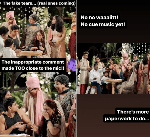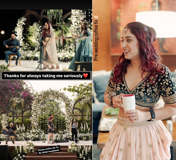 “प्री वेडिंग कॉफी फिक्स” असे कॅप्शन देत तिने पहिला फोटो शेअर केला. तर “मला नेहमी गांभीर्याने घेतल्याबद्दल धन्यवाद” असे म्हणत माईकसह सराव करतानाचा आणि लग्नातला फोटो तिन स्टोरीवर अपलोड केला. पुढे आमिर खानचा भावनिक फोटो शेअर करत आयराने ‘खोटे अश्रू’ असं मजेशीर कॅप्शन दिलं.
