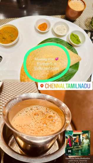 चेन्नईत गेल्यावर सारा अली खानने दाक्षिणात्य पदार्थांचा आस्वाद घेतला. अभिनेत्रीने तिच्या इन्स्टाग्राम स्टोरीवर डोसा-चटणी आणि चहाचा फोटो शेअर करीत चेन्नई-तामिळनाडू असे लोकेशन टाकले आहे. मात्र, चेन्नईत आल्यावर साराला दोन खास व्यक्तींची आठवण येत असून या दोन्ही व्यक्तींना साराने आपल्या फोटोमध्ये टॅग केले आहे. डोसा-चटणीचा फोटो शेअर करीत साराने तिचे ‘अतरंगी रे’ चित्रपटाचे दिग्दर्शक आनंद एल राय आणि या चित्रपटातील तिचा सहकलाकार धनुष यांना टॅग केले असून “मी तुम्हाला मिस करतेय…” असेही लिहिले आहे.