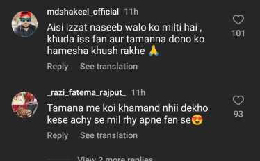 तमन्नाचा हा जबरा फॅन मुमेंटचा व्हिडीओ सध्या सोशल मीडियावर व्हायरल होत आहे. हा व्हिडीओ पाहून एक युझर म्हणाला की, “नशीबवाल्यांना असा आदर मिळतो. तमन्ना तुला आणि तुझ्या चाहतीला ईश्वर नेहमी आनंदी ठेवो”, तर दुसरा युझर म्हणाला, “पाहा, तमन्नाला कोणताही अहंकार नाहीये. किती चांगल्या पद्धतीने आपल्या चाहतीला ती भेटत आहे.”