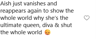 एका नेटकऱ्याने कमेंट करीत लिहिले, “खूप सुंदर.” दुसऱ्या एका नेटकऱ्याने लिहिले, “देवी.” आणखी एका नेटकऱ्याने लिहिले, “ऐश्वर्या गायब होते आणि पुन्हा जगाला हे सांगण्यासाठी समोर येते. ती क्वीन का आहे.” एका नेटकऱ्याने लिहिले, “तुला पुन्हा बघून खूप आनंद झाला. तू खूप चांगली आई, पत्नी आणि सून आहेस. आता ही वेळ स्वत:साठी काहीतरी करण्याची आहे. तू क्वीन आहेस.”