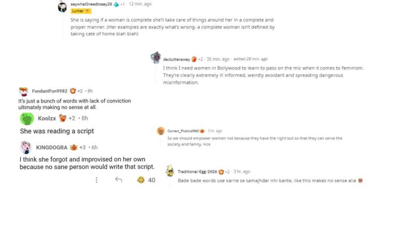 आलिया भट्टचा हा व्हिडीओ सध्या सोशल मीडियावर चांगलाच व्हायरल होत आहे. यावर अनेक नेटकऱ्यांनी आपल्या प्रतिक्रिया दिल्या आहे. एका युजरने म्हटले आहे की, “आलिया खूप छान रट्टा मारतेस”, तर दुसऱ्या एका युजरने लिहिले आहे की, “चांगली रिहर्सल केलीस, पण आत्मविश्वासाची कमी जाणवली.” काहींनी “बोलताना मोठे शब्द वापरले म्हणजे तुम्ही समजूतदार नाही होत आलिया, तुझ्या बोलण्याला काहीच अर्थ नाहीये” अशा कमेंट केल्या आहेत.