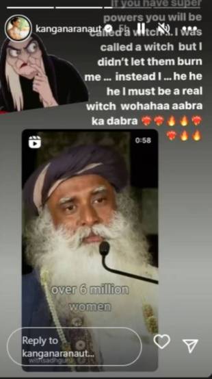 कंगनाने आपल्या इन्स्टाग्राम स्टोरीद्वारे म्हटलं की, “२०० वर्षांपूर्वी महिलांना चेटकीण म्हणत जिवंत जाळलं जायचं. मलाही आधी चेटकीण म्हटलं जायचं. पण याचा मी स्वतःवर परिणाम करून घेतला नाही. मी तर खरी चेटकीण आहे.” कंगनाची ही पोस्ट चर्चेत असताना तिने आणखी एक पोस्ट शेअर केली.