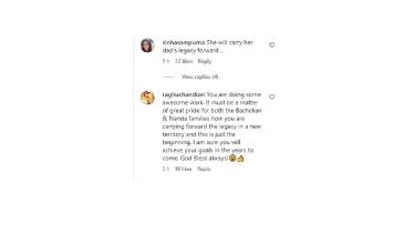अमिताभ यांची नात शहरी लाइफस्टाइल विसरून साधेपणाने लोकांमध्ये मिळून मिसळून वागतेय हे पाहून नेटकऱ्यांनी तिचे कौतुक केले आहे. “नव्या तिच्या वडिलांचा वारसा पुढे नेईल,” अशी कमेंट एका युजरने व्हिडीओवर केली आहे. तसेच दुसर्या युजरने लिहिले, “तुम्ही अप्रतिम काम करत असून बच्चन आणि नंदा कुटुंबीयांसाठी ही खूप अभिमानाची गोष्ट आहे.”
