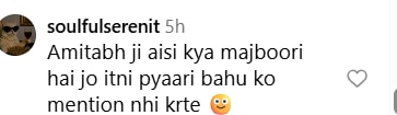 या सगळ्यात अनेक नेटकऱ्यांनी अमिताभ बच्चन यांनी ऐश्वर्या रायचे नाव का घेतले नाही, असेही प्रश्न विचारले आहेत. “अभिनंदन! पण तुमच्या कुटुंबात ऐश्वर्या व आराध्या यांचा उल्लेख कधीच का नसतो?”, “ऐश्वर्या कुठे आहे?”, “ऐश्वर्याबद्दल काय? ती तुमच्या कुटुंबाचा भाग नाही का?”, “त्यांनी आधीच ऐश्वर्याला कुटुंबातून बाहेर काढलं आहे का?”, “अमिताभजी असे काय झाले की, तुम्ही तुमच्या प्रेमळ सूनेचे नाव घेतले नाही”, “ऐश्वर्या तुमच्या कुटुंबात आहे की नाही?”, “तुम्ही तुमच्या सुनेला विसरला का? तिला दोन वेळा फिल्मफेअर पुरस्काराने गौरविण्यात आले आहे”, “अभिनंदन! तुम्ही तुमच्या सुनेबद्दल काहीतरी बोलायला पाहिजे होते”, अशा अनेक कमेंट्स पाहायला मिळत आहेत, ज्यामध्ये ऐश्वर्याबद्दल विचारण्यात आले आहे.