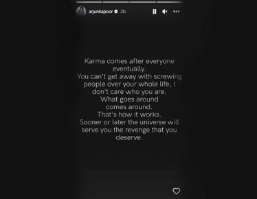 अर्जुनने आता आणखी एक पोस्ट शेअर केली आहे. यामध्ये अर्जुनने म्हटलं की, “प्रत्येकाला आपल्या कर्माची फळ मिळतात. आयुष्यभर तुम्ही इतर लोकांशी वैर करू शकत नाही. तुम्ही कोण आहात? याचा मला फरक पडत नाही. तुम्ही जसं वागणार तसंच तुम्हाला सगळं परत मिळणार. ब्रम्हांड तुम्हाला तुमच्या कर्माची फळं लवकर किंवा उशीर का होईना पण देणारच.”