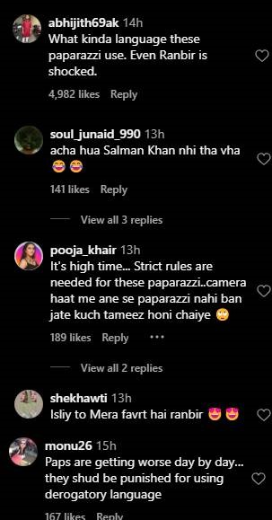 अभिनेत्याचा हा व्हिडीओ पाहून नेटकरी देखील संतापले आहेत. एका नेटकऱ्याने लिहिलं आहे, “ही कोणत्या पद्धतीची भाषा आहे. रणबीरलाही ऐकून धक्का बसला.” तर दुसऱ्या नेटकऱ्याने लिहिलं आहे, “नशीब रणबीरच्या जागी सलमान खान नव्हता.” तसेच तिसऱ्या नेटकऱ्याने लिहिलं आहे, “पापाराझी दिवसेंदिवस वाईट होतं चालले आहेत. त्यांना आक्षेपार्ह भाषा वापरल्याबद्दल शिक्षा व्हायला हवी.” चौथ्या नेटकऱ्याने लिहिलं, “ही वेळ आहे. पापाराझींसाठी कठोर नियम हवेत. कॅमेरा हातात आला की पापाराझी होता येत नाही. एक शिस्त पाहिजे.”
