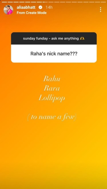 तसेच आणखी एका चाहत्याने राहाच्या टोपणं नावाविषयी विचारले. तेव्हा आलिया म्हणाली, “मी राहाला राहू, रारा आणि लॉलीपॉप या टोपणं नावांनी हाक मारते.”