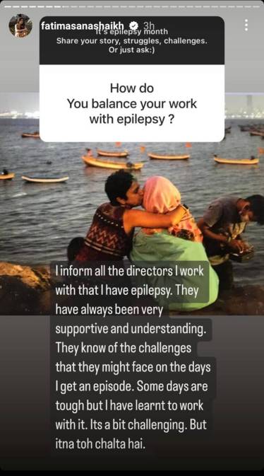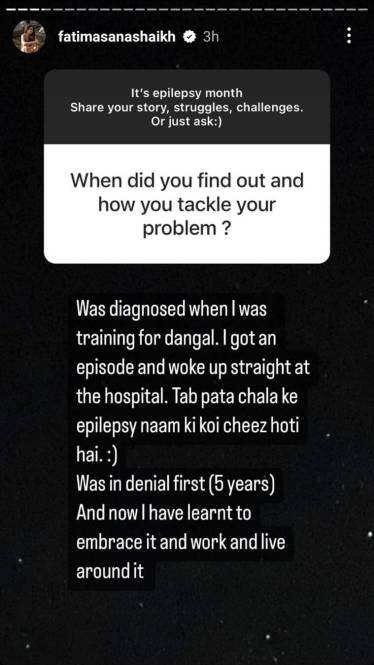 फातिमाने तिच्या इंस्टाग्राम स्टोरीवर तिला असलेल्या या आजाराबद्दलची माहिती तिच्या चाहत्यांना सांगत ‘अपस्मार’ (एपिलेप्सी) या आजाराबद्दल तिला प्रश्न विचारण्यास सांगितले. फातिमाला हा आजार असल्याचे कळताच अनेकांनी काळजी व्यक्त केली. तसंच तिला अनेक जणांनी या आजाराबद्दल प्रश्नही विचारले. फातिमाने त्यातील अनेक महत्त्वाच्या प्रश्नांची उत्तरं देत या आजाराबद्दल असलेले गैरसमज दूर केले.