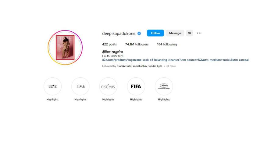 टाइम मॅगझिनच्या मुखपृष्ठावर स्थान मिळवल्यावर दीपिकाने आपल्या इन्स्टाग्राम अकाऊंटवरील नावात मोठा बदल केला आहे. अभिनेत्रीने आपले नाव ‘दीपिका पादुकोण’ असे हिंदीमध्ये लिहिले आहे. यापूर्वी दीपिकाच्या इन्स्टाग्राम बायोमध्ये इंग्रजीत नाव दिसायचे, परंतु अलीकडेच स्वत:चे नाव हिंदीमध्ये अपडेट करीत तिने मोठा बदल केला आहे.