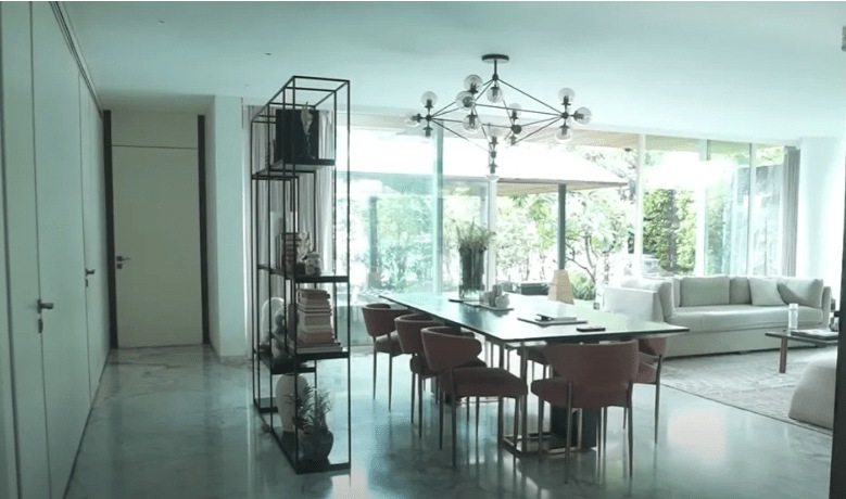 डायनिंग एरीयामध्ये तिने कपाटात पुस्तके ठेवल्याचे दिसले. तसेच मीटिंगरूममध्ये तिच्या ट्रॉफी पाहायला मिळतात. गार्डनच्या सुरुवातीला वाहते पाणी देखील दिसते. तसेच अमिताभ बच्चन यांनी तिचा अंग्रेजी मीडियम चित्रपटातील काम पाहून तिचे कौतुक करणारे एक पत्र लिहिले होते. ते तिने तिथे ठेवले असल्याचे पाहायला मिळाले.