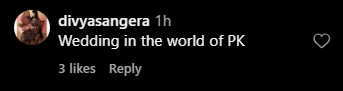अभिनेत्याचा या व्हिडीओवर नेटकऱ्यांनी भरभरून प्रतिक्रिया दिल्या आहेत. एका नेटकऱ्याने लिहिल आहे, “पीके स्टाइल डान्सिंग.” तर दुसऱ्या नेटकऱ्याने लिहिल आहे, “पीके आहेस का?” तसेच तिसऱ्या नेटकऱ्याने लिहिल आहे, “पीकेच्या जगातील लग्न.”