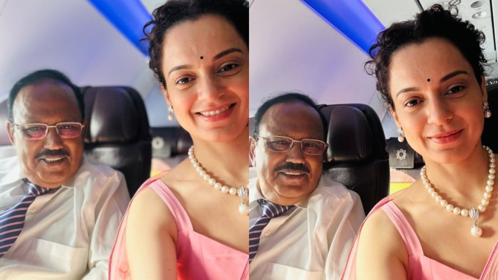मुंबई ते दिल्ली या प्रवासादरम्यान कंगनाला विमानात अजित डोवाल भेटले, जे तिच्या शेजारच्या सीटवर बसले होते. कंगना रणौतने राष्ट्रीय सुरक्षा सल्लागार अजित डोवाल यांच्याशी अचानक झालेल्या या भेटीचे काही फोटो सोशल मीडियावर शेअर केले आहेत. याबरोबरच तिने इन्स्टाग्राम स्टोरीमध्ये फोटो शेअर करत अजित डोवाल यांना भेटल्याचा आनंदही व्यक्त केला.