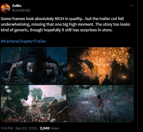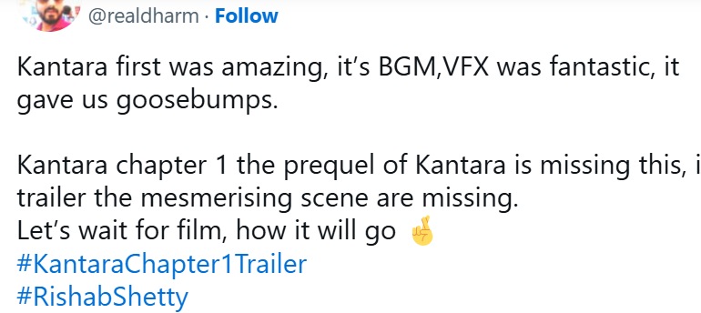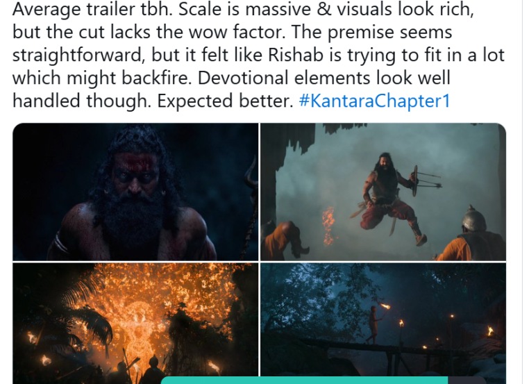 तर काही नेटकऱ्यांनी नाराजीदेखील व्यक्त केली आहे. एका नेटकऱ्याने लिहिले, “कांतारा चित्रपट अद्भुत होता. त्यामध्ये वापरलेले बीजीएम आणि व्हीएफएक्स जबरदस्त होते. कांतारा चॅप्टर १ मध्ये हे दिसत नाही. ट्रेलरमध्ये मंत्रमुग्ध करणारे सीन नाहीत. आता चित्रपट कसा असेल, हे पाहणे महत्वाचे आहे.” आणखी एका नेटकऱ्याने लिहिले, “काही फ्रेम्स दर्जेदार दिसत आहेत. पण ट्रेलर कट निराशाजनक वाटला. कथादेखील सामान्य वाटत आहे. पण तरीही चित्रपटात रहस्ये दडलेली असतील, अशी आशा आहे.”