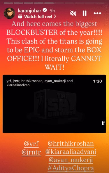 आता दिग्दर्शक व निर्माता करण जोहरनेदेखील या ‘वॉर २’ च्या टीझरचे कौतुक केले आहे. तसेच, हा चित्रपट ब्लॉकबस्टर ठरणार असल्याचेदेखील त्याने म्हटले आहे. करण जोहरने सोशल मीडियावर टीझर शेअर करत त्याच्या भावना व्यक्त केल्या. करण जोहर म्हणाला की या वर्षातील हा ब्लॉकबस्टर चित्रपट आहे. मी हा चित्रपट प्रदर्शित होण्याची वाट पाहू शकत नाही, अशा शब्दात त्याने त्याची उत्सुकता व्यक्त केली.