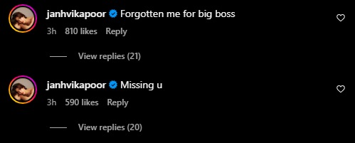 ओरीने शेअर केलेल्या या व्हिडीओवर जान्हवी कपूरने प्रतिक्रिया दिल्या आहेत. “बिग बॉससाठी तू मला विसरला”, “मला तुझी खूप आठवण येते”, अशा प्रतिक्रिया या व्हिडीओवर जान्हवीने दिल्या आहेत.